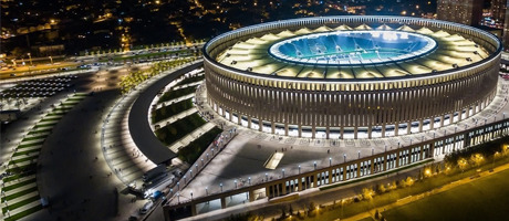 Крыша особой вантовой конструкции закрывает все зрительские места. Трибуны оснащены системой инфракрасного обогрева для максимального комфорта болельщиков в холодную погоду. По всему периметру в чаше стадиона установлен гигантский медиаэкран площадью 4700 м2. Футбольное поле построено с применением всех современных технологий: подогрев, принудительная аэрация, охлаждение, искусственное освещение газона. Комфорт и безопасность на матчах обеспечивают до 700 стюардов. Рядом со стадионом на площади в 21 гектар возведён парк. Количество мест на парковке – 1807. Парковка внутри стадиона рассчитана на 249 автомобилей. Технические возможности стадиона позволяют проводить на нём матчи любых турниров под эгидой УЕФА и ФИФА.